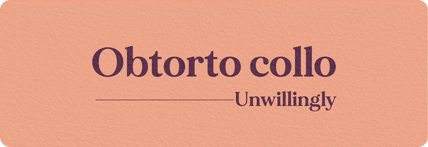 🇮🇹 Obtorto collo è una locuzione avverbiale latina che significa letteralmente "a collo torto".
