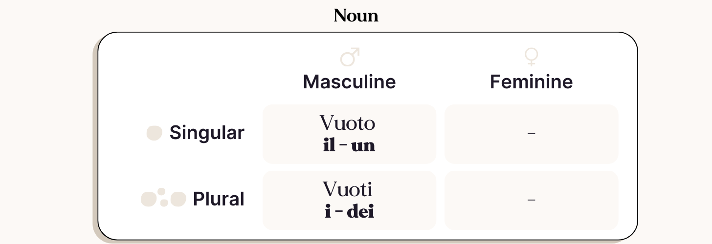 🇮🇹 Vuoto deriva dal latino *vŏcĭtu(m), a sua volta da vacitus, participio passato di *vacēre, che significa "vuotare".